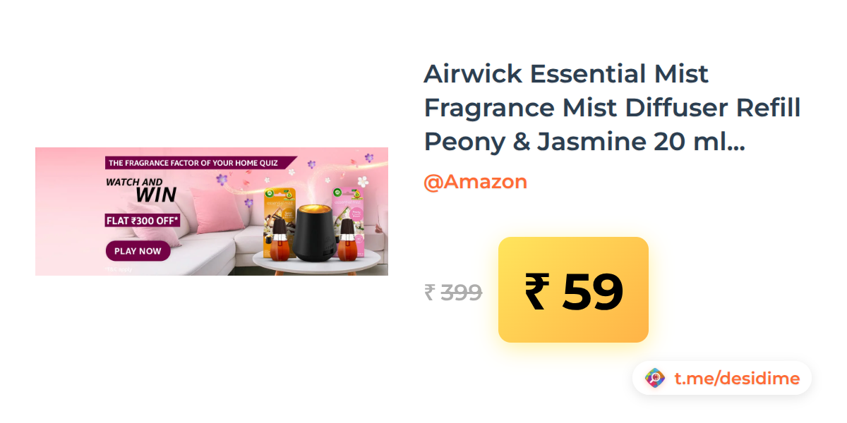 85% off on - Airwick Essential Mist Fragrance Mist Diffuser Refill Peony & Jasmine 20 ml Natural Essential Oils - Rs. 59