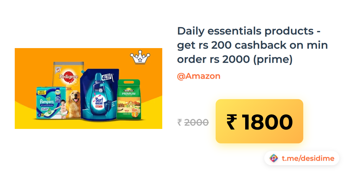 10% off on - Daily essentials products - get rs 200 cashback on min order rs 2000 (prime) - Rs. 1800