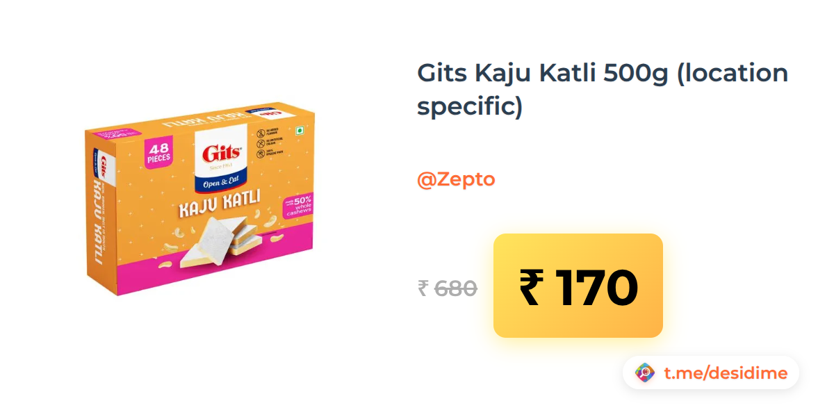 75% off on - Gits Kaju Katli 500g (location specific) - Rs. 170
