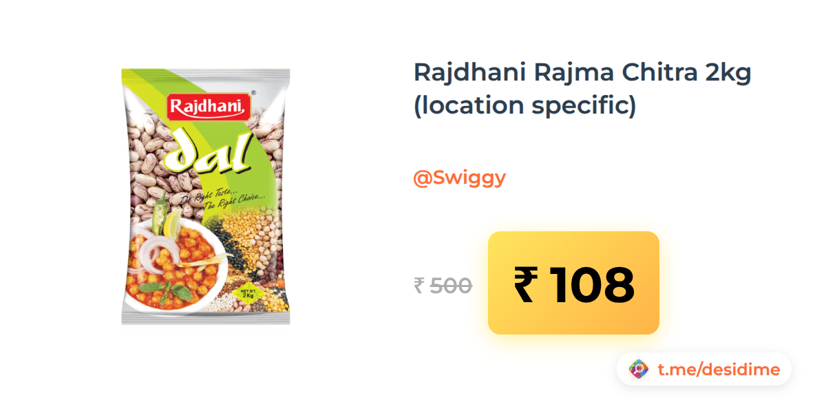 78% off on - Rajdhani Rajma Chitra 2kg (location specific) - Rs. 108
