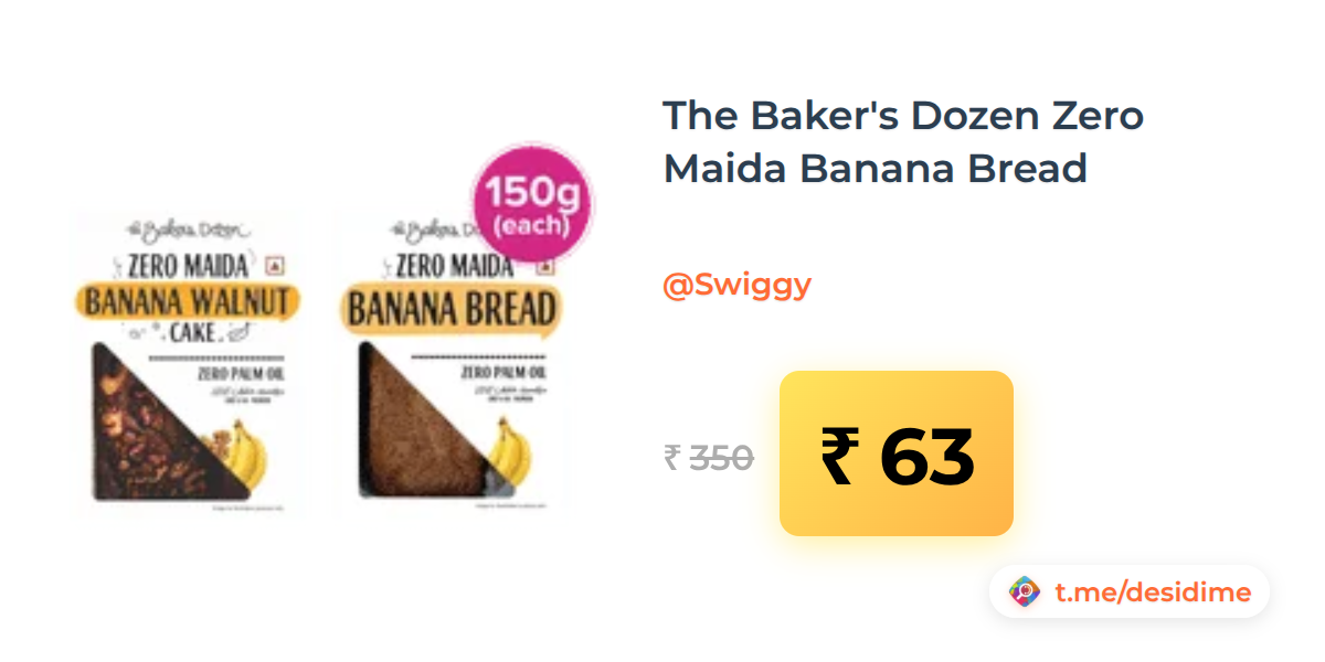 82% off on - The Baker's Dozen Zero Maida Banana Bread - Rs. 63