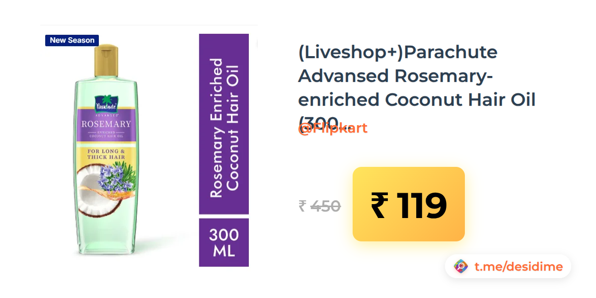 74% off on - (Liveshop+)Parachute Advansed Rosemary-enriched Coconut Hair Oil (300 ML) - Rs. 119