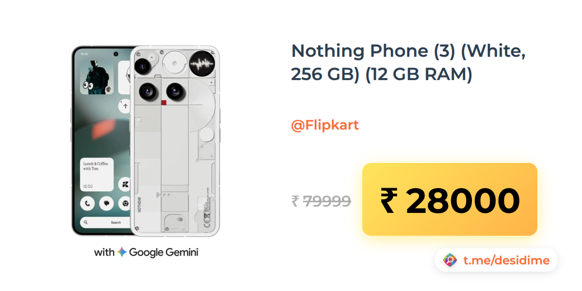 65% off on - Nothing Phone (3) (White, 256 GB) (12 GB RAM) - Rs. 28000