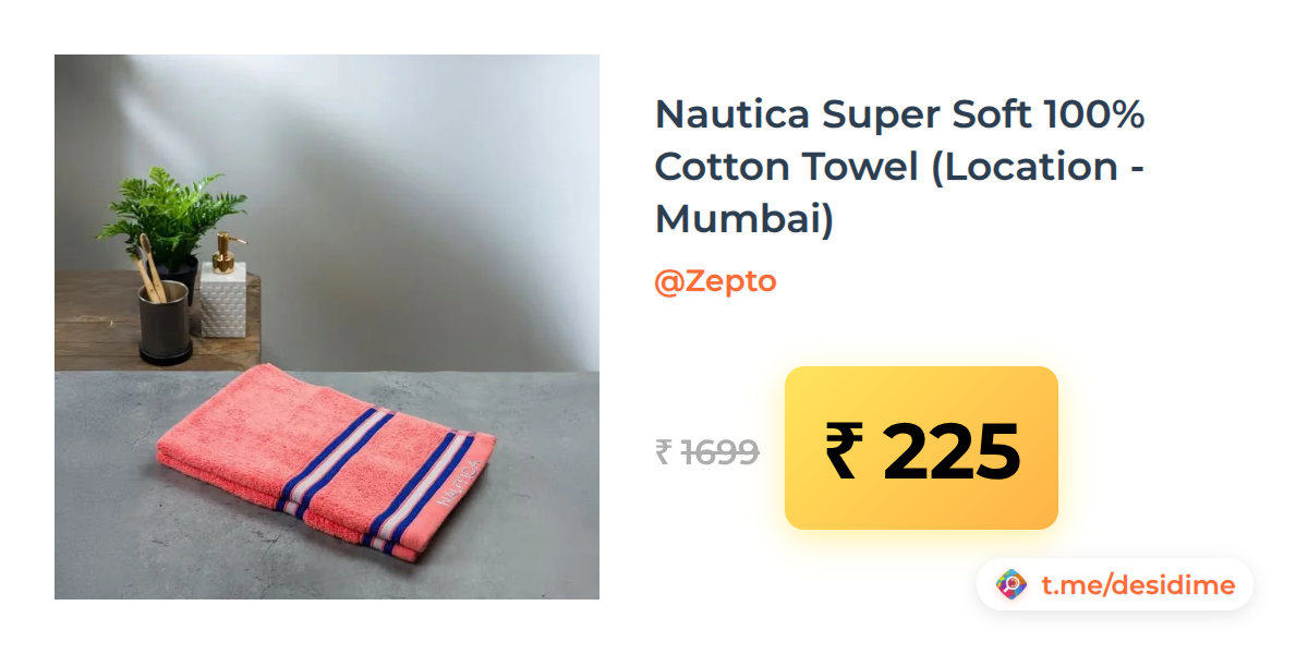 87% off on - Nautica Super Soft 100% Cotton Towel (Location - Mumbai) - Rs. 225