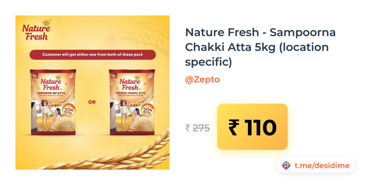 60% off on - Nature Fresh - Sampoorna Chakki Atta 5kg (location specific) - Rs. 110