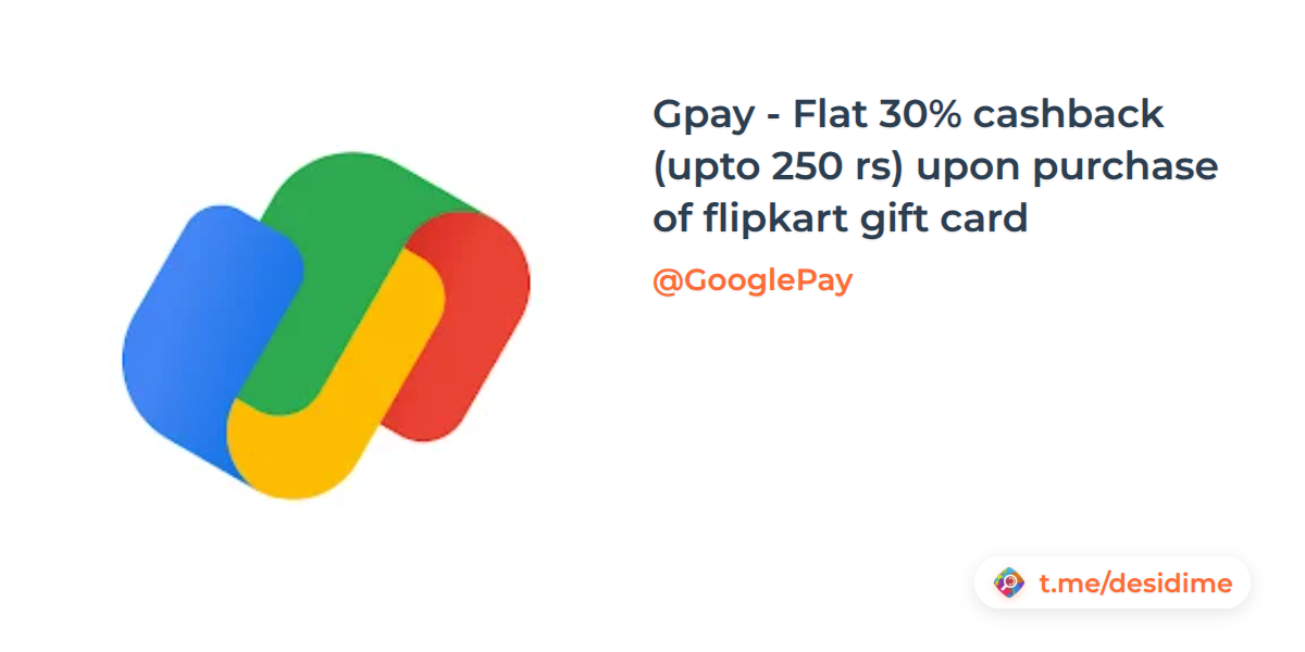 Gpay - Flat 30% cashback (upto 250 rs) upon purchase of flipkart gift card