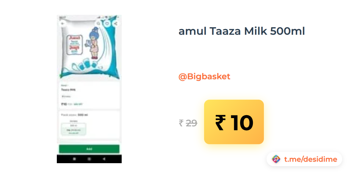 66% off on - amul Taaza Milk 500ml - Rs. 10