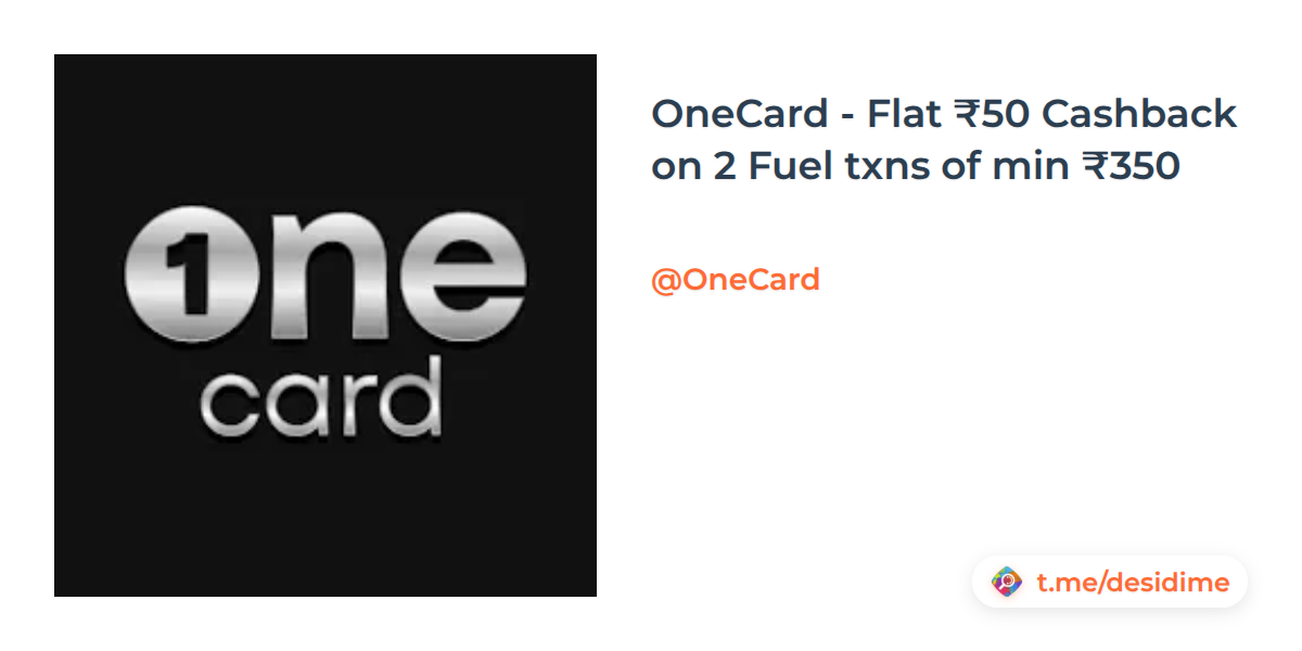 OneCard - Flat ₹50 Cashback on 2 Fuel txns of min ₹350