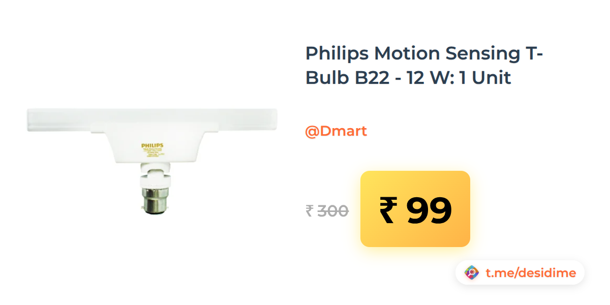 67% off on - Philips Motion Sensing T-Bulb B22 - 12 W: 1 Unit - Rs. 99