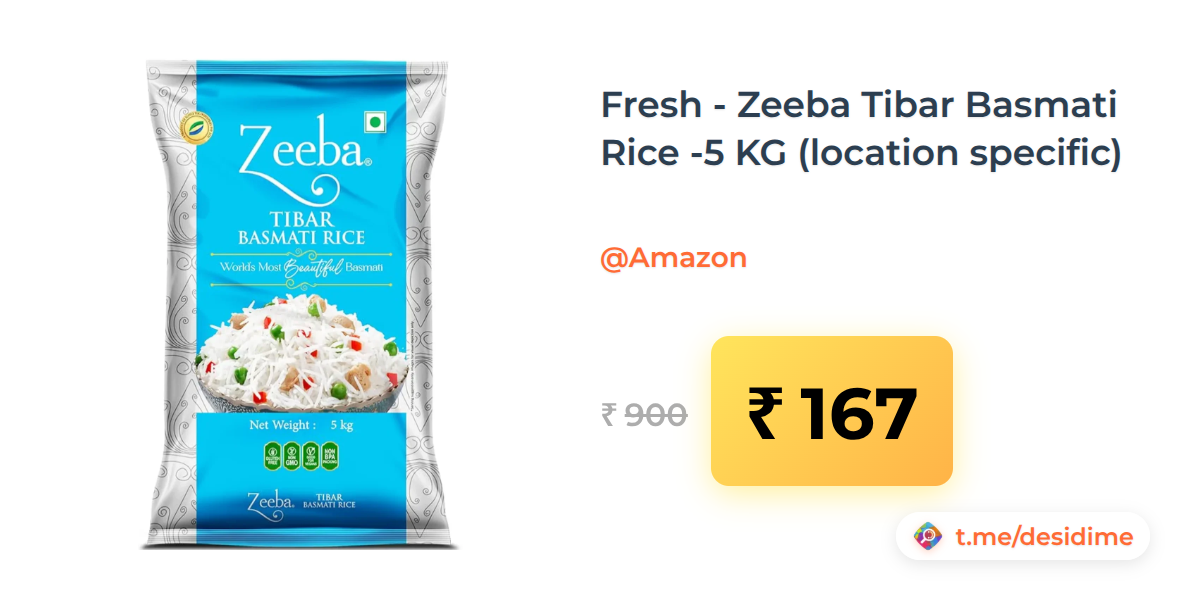 81% off on - Fresh - Zeeba Tibar Basmati Rice -5 KG (location specific) - Rs. 167