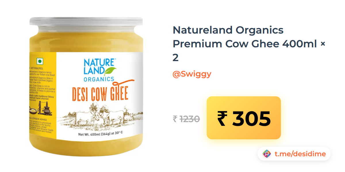 75% off on - Natureland Organics Premium Cow Ghee 400ml × 2 - Rs. 305