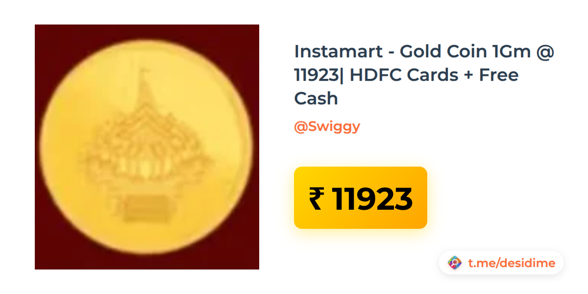 Instamart - Gold Coin 1Gm @ 11923| HDFC Cards + Free Cash - Rs. 11923
