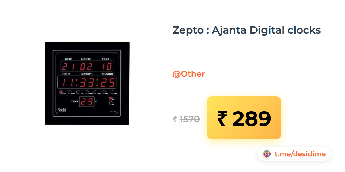 82% off on - Zepto : Ajanta Digital clocks - Rs. 289