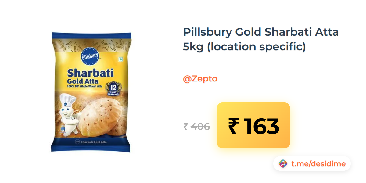 60% off on - Pillsbury Gold Sharbati Atta 5kg (location specific) - Rs. 163