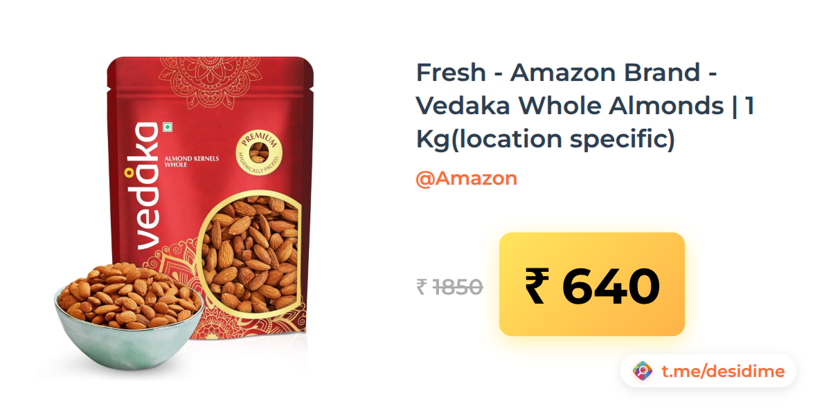 65% off on - Fresh - Amazon Brand - Vedaka Whole Almonds | 1 Kg(location specific) - Rs. 640