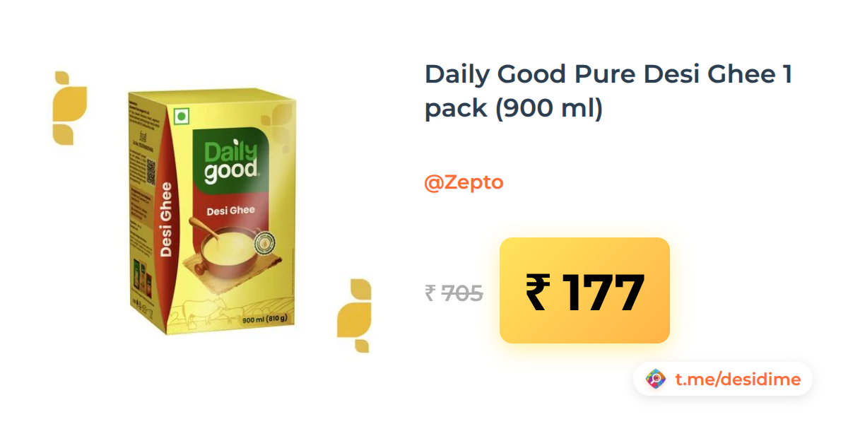 75% off on - Daily Good Pure Desi Ghee 1 pack (900 ml) - Rs. 177