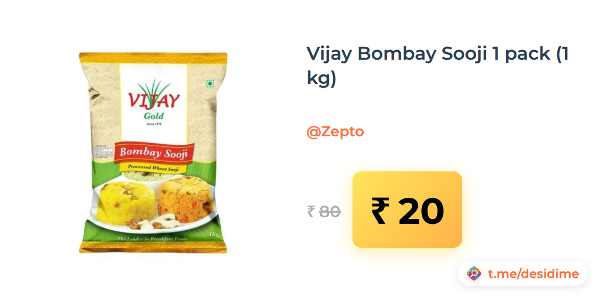 75% off on - Vijay Bombay Sooji 1 pack (1 kg) - Rs. 20