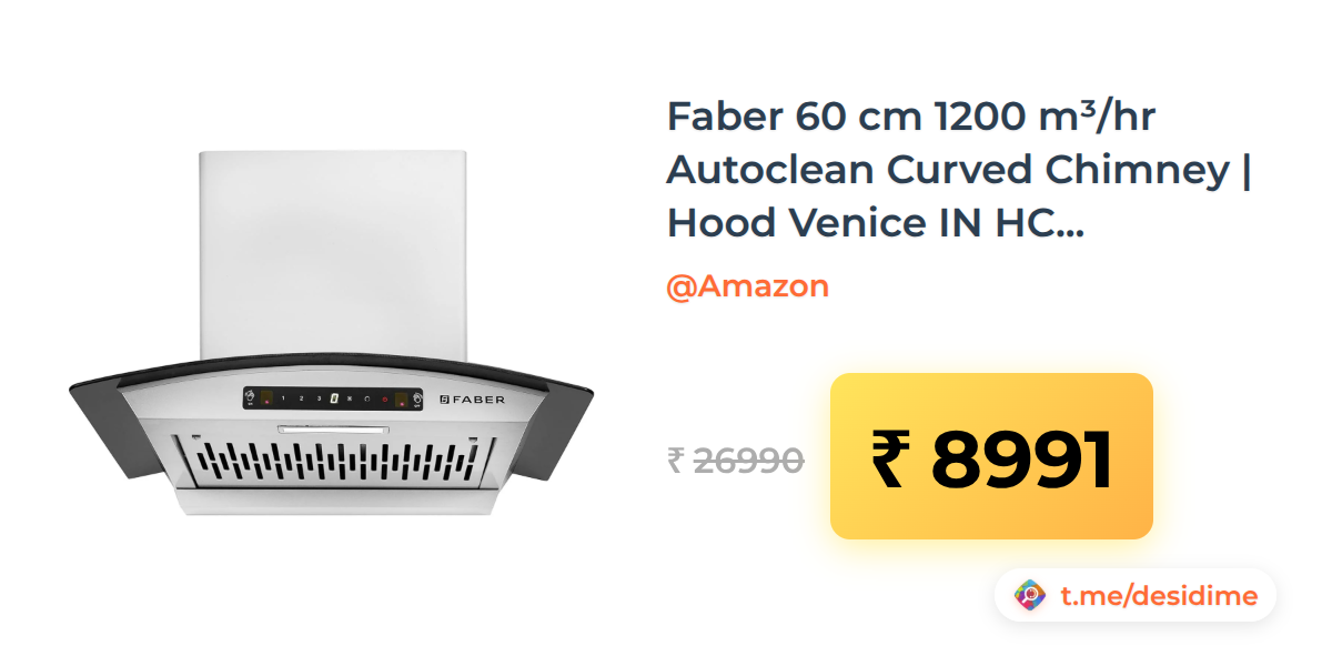 67% off on - Faber 60 cm 1200 m³/hr Autoclean Curved Chimney | Hood Venice IN HC SC FL LG 60 - Rs. 8991