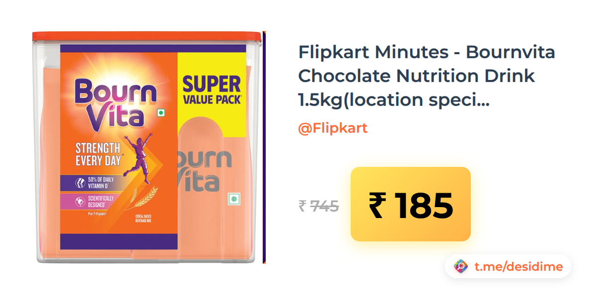 75% off on - Flipkart Minutes - Bournvita Chocolate Nutrition Drink 1.5kg(location specific) - Rs. 185