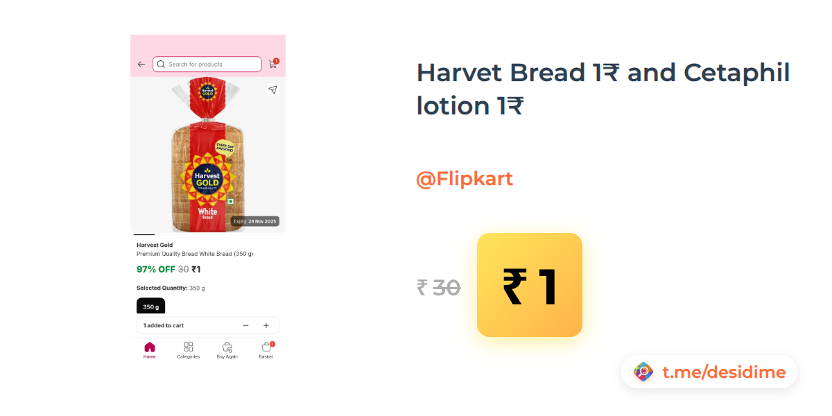 97% off on - Harvet Bread 1₹ and Cetaphil lotion 1₹ - Rs. 1