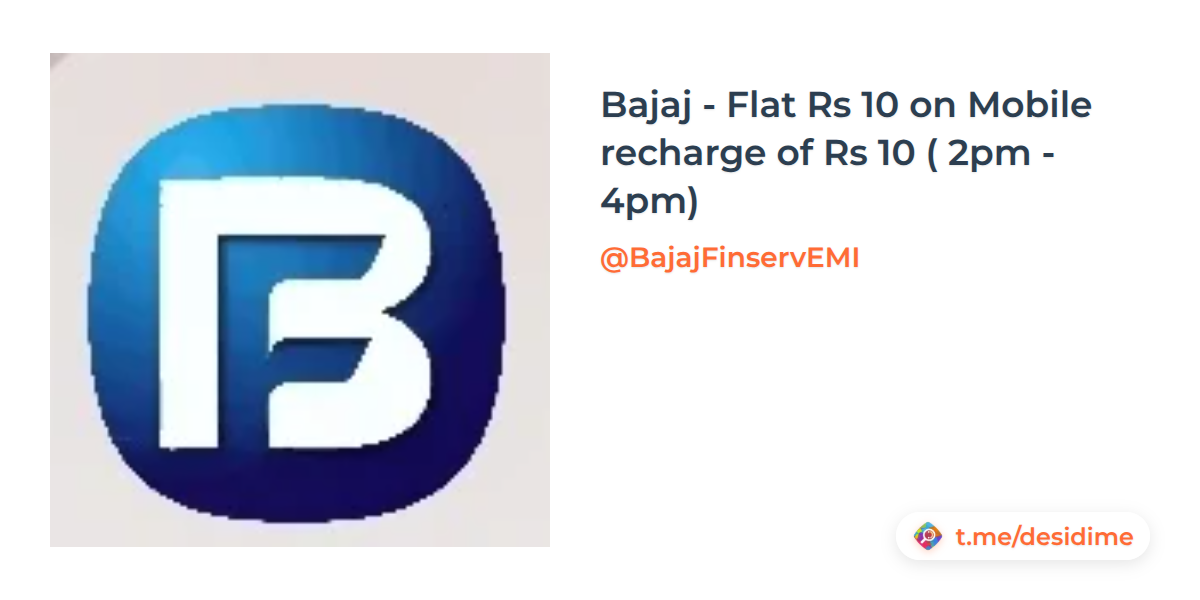 Bajaj - Flat Rs 10 on Mobile recharge of Rs 10 ( 2pm - 4pm)