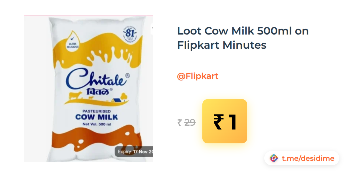 97% off on - Loot Cow Milk 500ml on Flipkart Minutes - Rs. 1