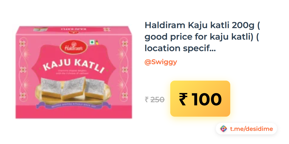 60% off on - Haldiram Kaju katli 200g ( good price for kaju katli) ( location specific) - Rs. 100