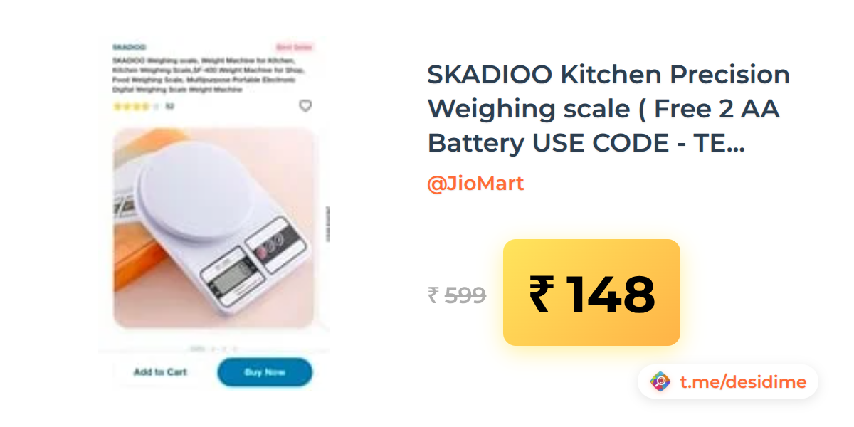 75% off on - SKADIOO Kitchen Precision Weighing scale ( Free 2 AA Battery USE CODE - TECH20 )Weight Machine for Kitchen, Kitchen Weighing Scale,SF-400 Electronic Digital Weighing Scale Weight Machine - Rs. 148