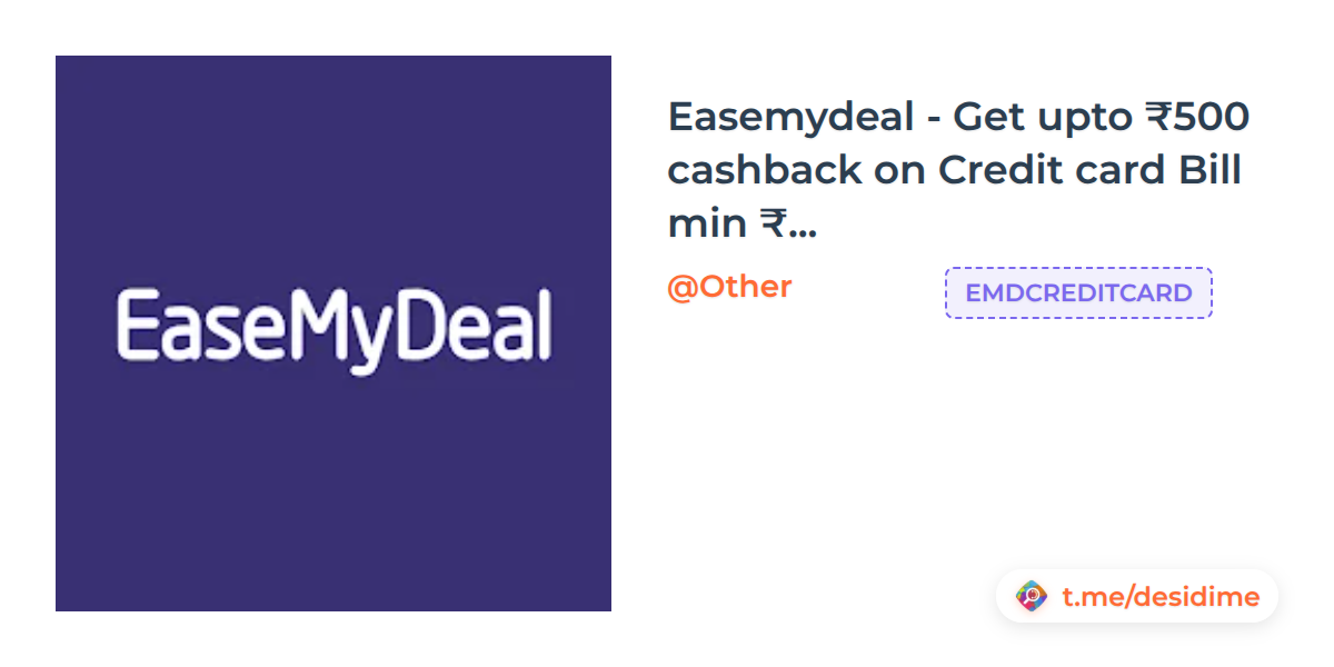 Easemydeal - Get upto β‚Ή500 cashback on Credit card Bill min β‚Ή500 (Got β‚Ή13 +2)