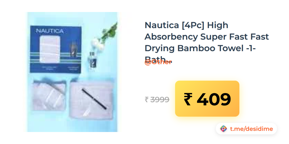 90% off on - Nautica [4Pc] High Absorbency Super Fast Fast Drying Bamboo Towel -1-Bath 2-Hand 1- Solid-Ltgrey - Rs. 409