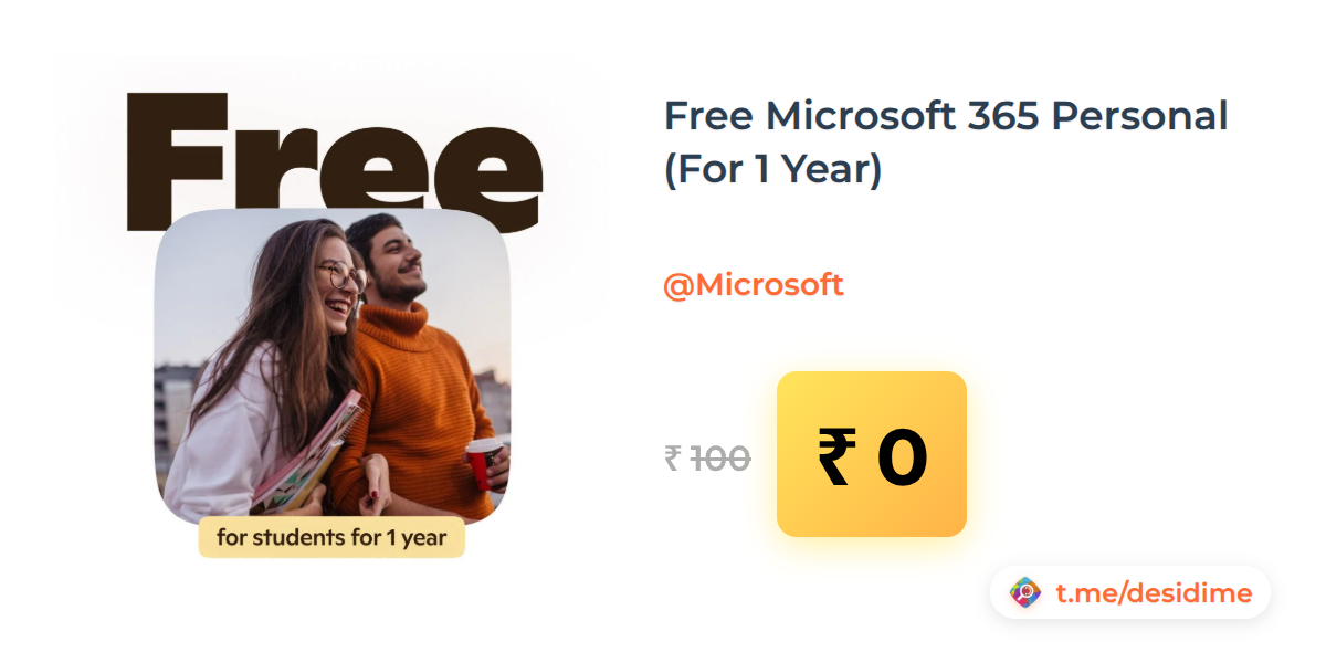 100% off on - Free Microsoft 365 Personal (For 1 Year) - Rs. 0 Read More - https://ddime.in/hfWH Buy Now - https://ddime.in/hfWI