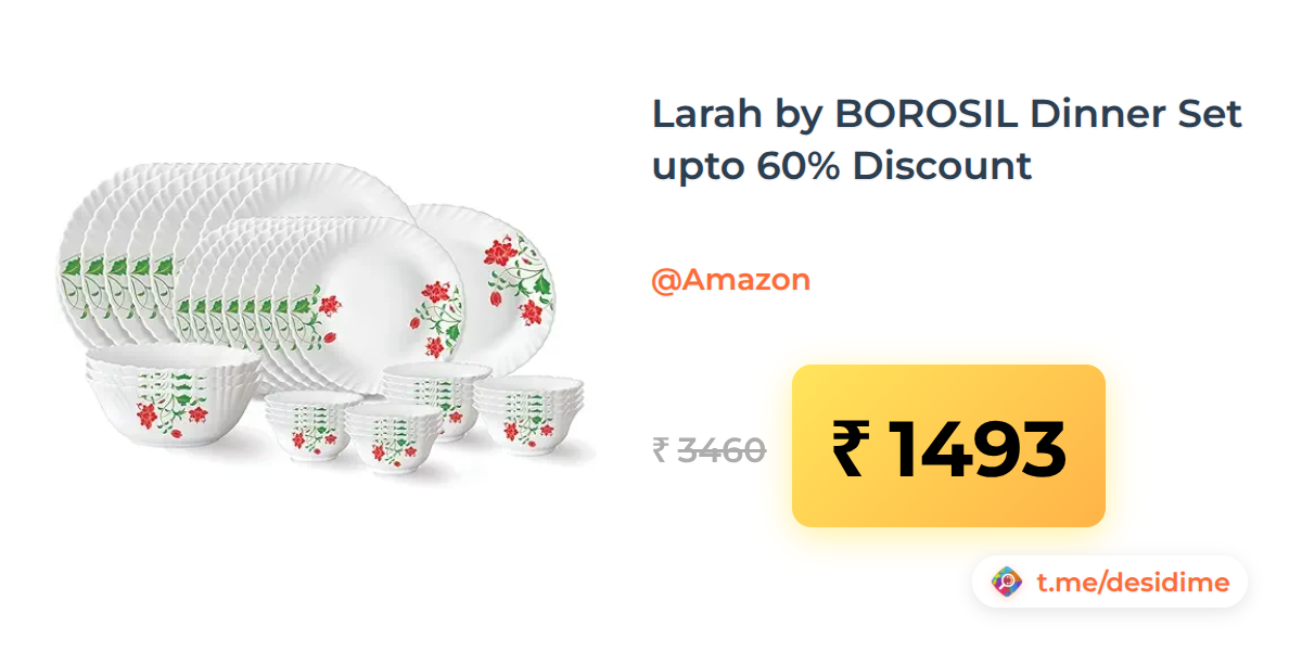 57% off on - Larah by BOROSIL Dinner Set upto 60% Discount - Rs. 1493