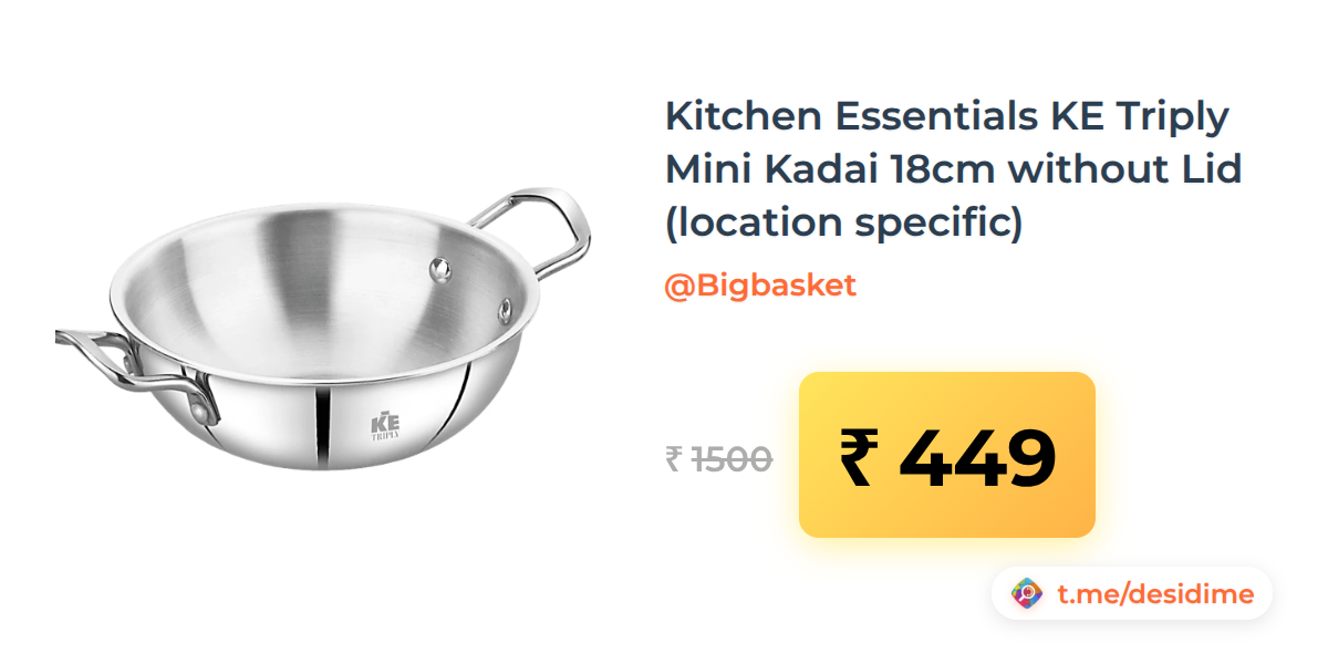 70% off on - Kitchen Essentials KE Triply Mini Kadai 18cm without Lid (location specific) - Rs. 449