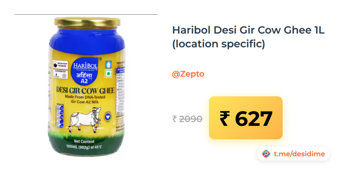 70% off on - Haribol Desi Gir Cow Ghee 1L (location specific) - Rs. 627