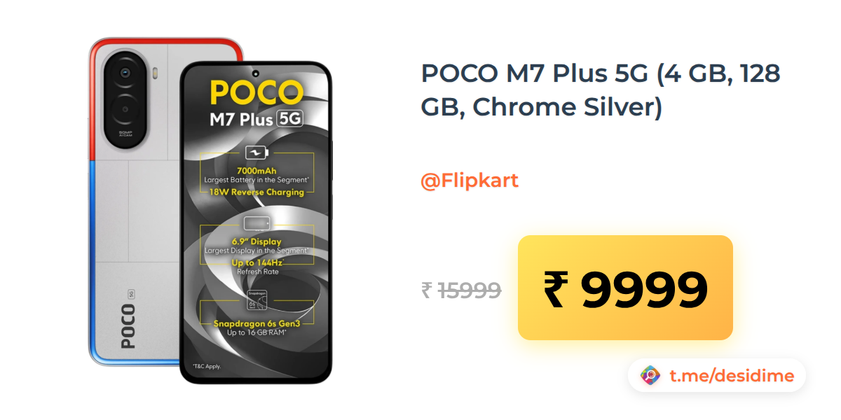 38% off on - POCO M7 Plus 5G (4 GB, 128 GB, Chrome Silver) - Rs. 9999