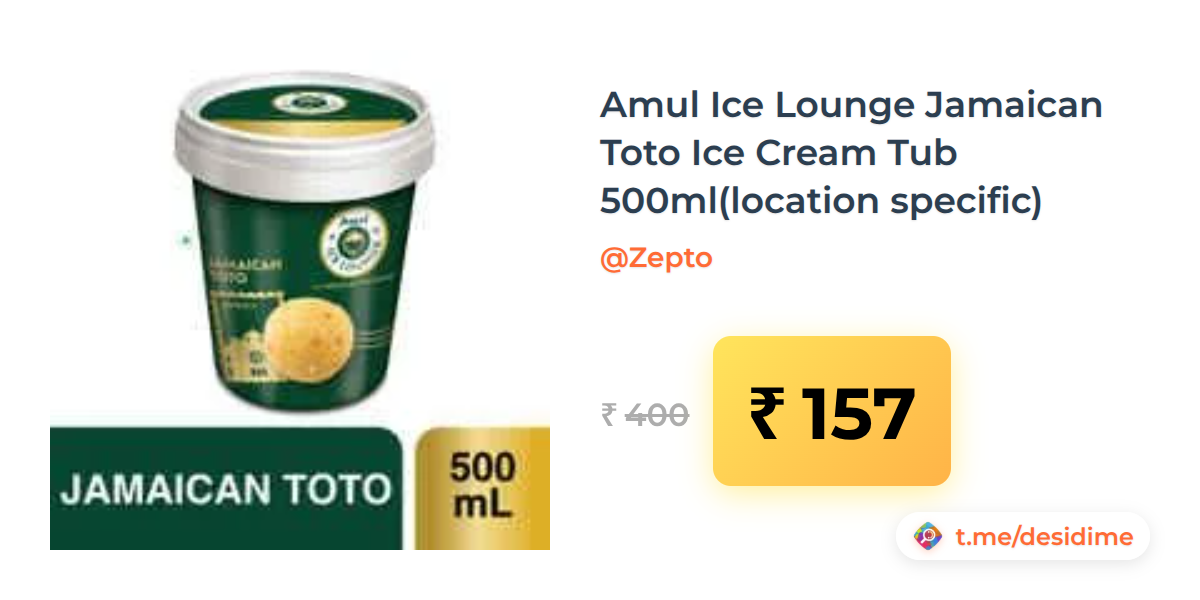 61% off on - Amul Ice Lounge Jamaican Toto Ice Cream Tub 500ml(location specific) - Rs. 157