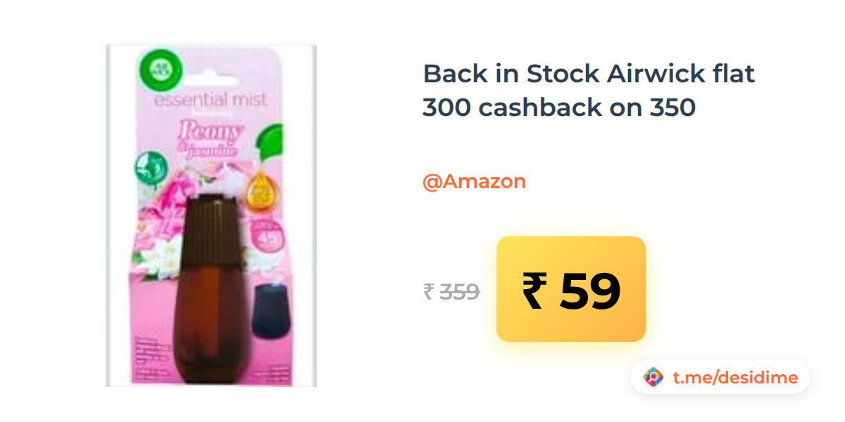 84% off on - Back in Stock Airwick flat 300 cashback on 350 - Rs. 59