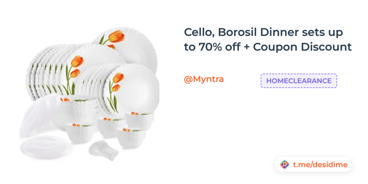 Cello, Borosil Dinner sets up to 70% off + Coupon Discount