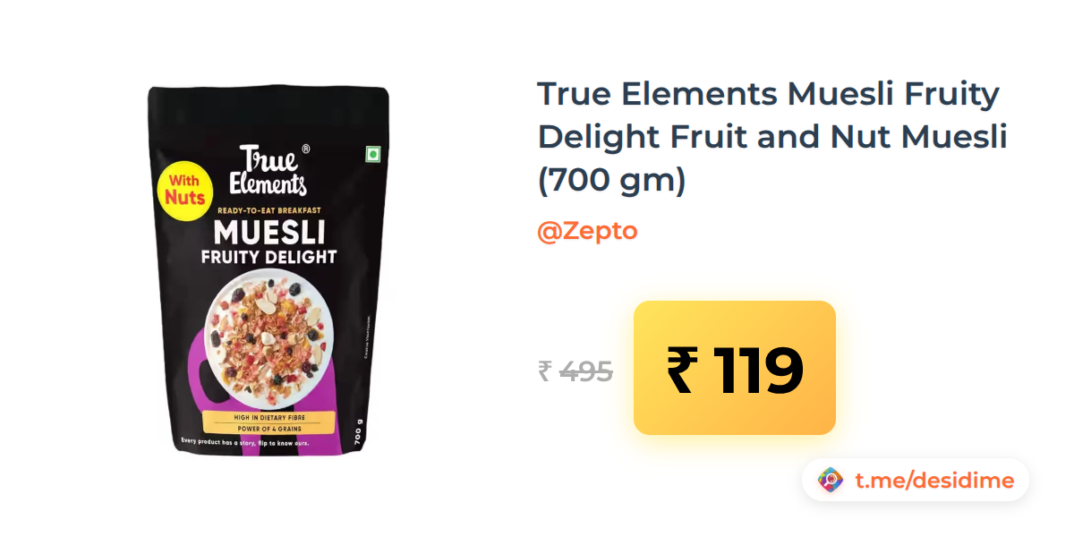76% off on - True Elements Muesli Fruity Delight Fruit and Nut Muesli (700 gm) - Rs. 119