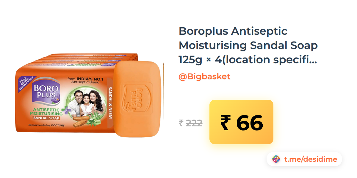 70% off on - Boroplus Antiseptic Moisturising Sandal Soap 125g × 4(location specific) - Rs. 66