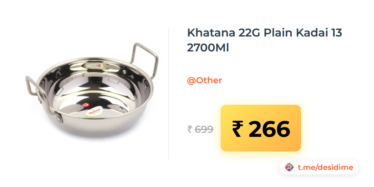 62% off on - Khatana 22G Plain Kadai 13 2700Ml - Rs. 266