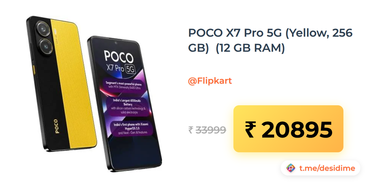39% off on - POCO X7 Pro 5G (Yellow, 256 GB) (12 GB RAM) - Rs. 20895
