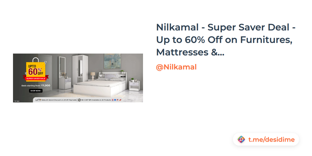 Nilkamal - Super Saver Deal - Up to 60% Off on Furnitures, Mattresses & More