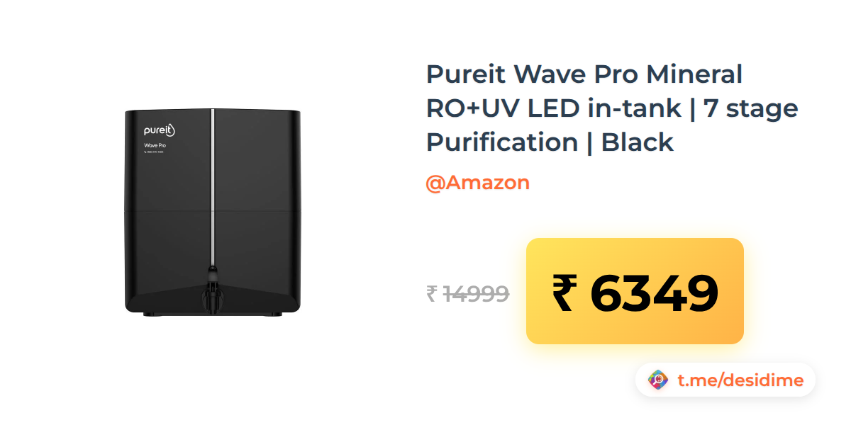 58% off on - Pureit Wave Pro Mineral RO+UV LED in-tank | 7 stage Purification | Black - Rs. 6349