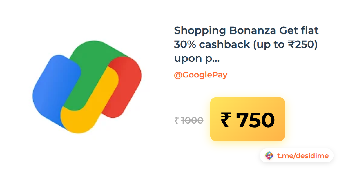 Get flat 30% cashback (up to ₹250) upon purchase of Flipkart gift cards on Google Pay(USER SPECIFIC ) - Rs. 750