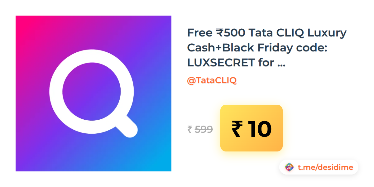 98% off on - Free ₹500 Tata CLIQ Luxury Cash+Black Friday code: LUXSECRET for EXTRA 15% OFF - Rs. 10