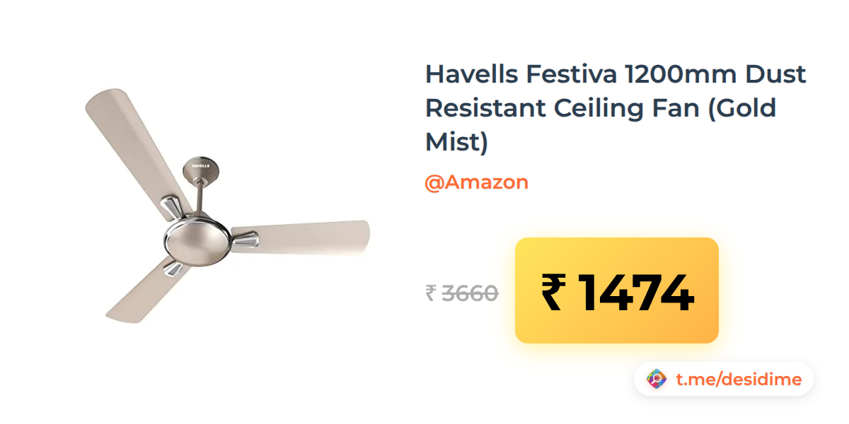60% off on - Havells Festiva 1200mm Dust Resistant Ceiling Fan (Gold Mist) - Rs. 1474