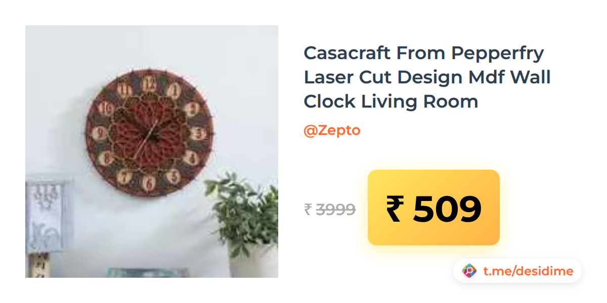 87% off on - Casacraft From Pepperfry Laser Cut Design Mdf Wall Clock Living Room - Rs. 509