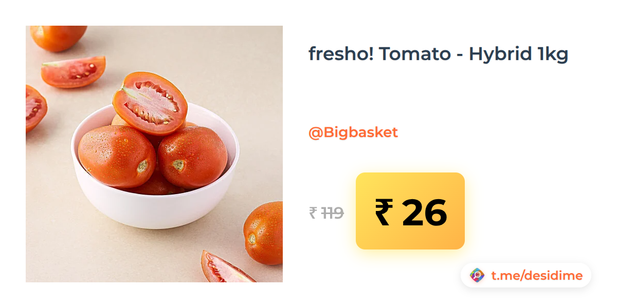 78% off on - fresho! Tomato - Hybrid 1kg - Rs. 26