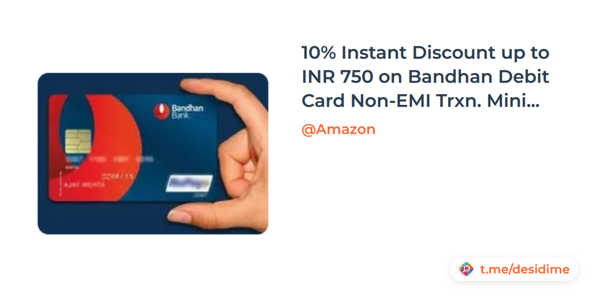 10% Instant Discount up to INR 750 on Bandhan Debit Card Non-EMI Trxn. Minimum purchase value INR 2000